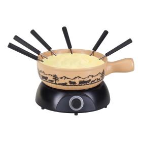 Material: Terracotta| Detailfarbe: Schwarz| Fondue Variante: Käsefondue| Spülmaschinenfest: Ja| Durchmesser: 22 cm| Kompatible Kochfelder: Backofen| Gas| Grillrost